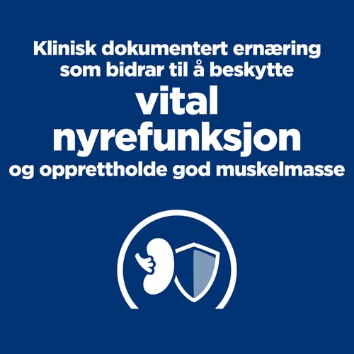 Hill's ernæringsfysiologer og veterinærer har utviklet Hill's Prescription Diet k/d klinisk ernæring med ActivBiome+ Kidney Defence, en eksklusiv blanding av prebiotika som er vitenskapelig bevist å nære tarmmikrobiomet, og dermed støtte optimal nyrefunksjon. Prescription Diet k/d er tilgjengelig i ulike varianter av våtfôr med delikate smaker, designet for å tiltrekke selv de mest kresne spisere. Dette våtfôret er laget med kylling og har en uimotståelig smak som katten din vil elske. Faktisk er Prescription Diet k/d klinisk dokumentert ernæring som øker og forlenger livskvaliteten.