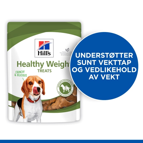 Hill's Healthy Weight Dog Treats er velsmakende, sunne og belønnende godbiter for voksne hunder over 1 år.